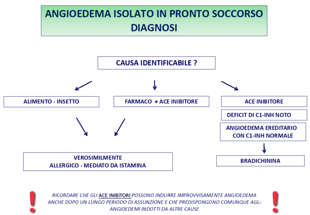 La maggior parte degli angioedemi è mediata dall’istamina ma la presentazione clinica non consente sempre di differenziare fra queste forme e quelle indotte dalla bradichinina.