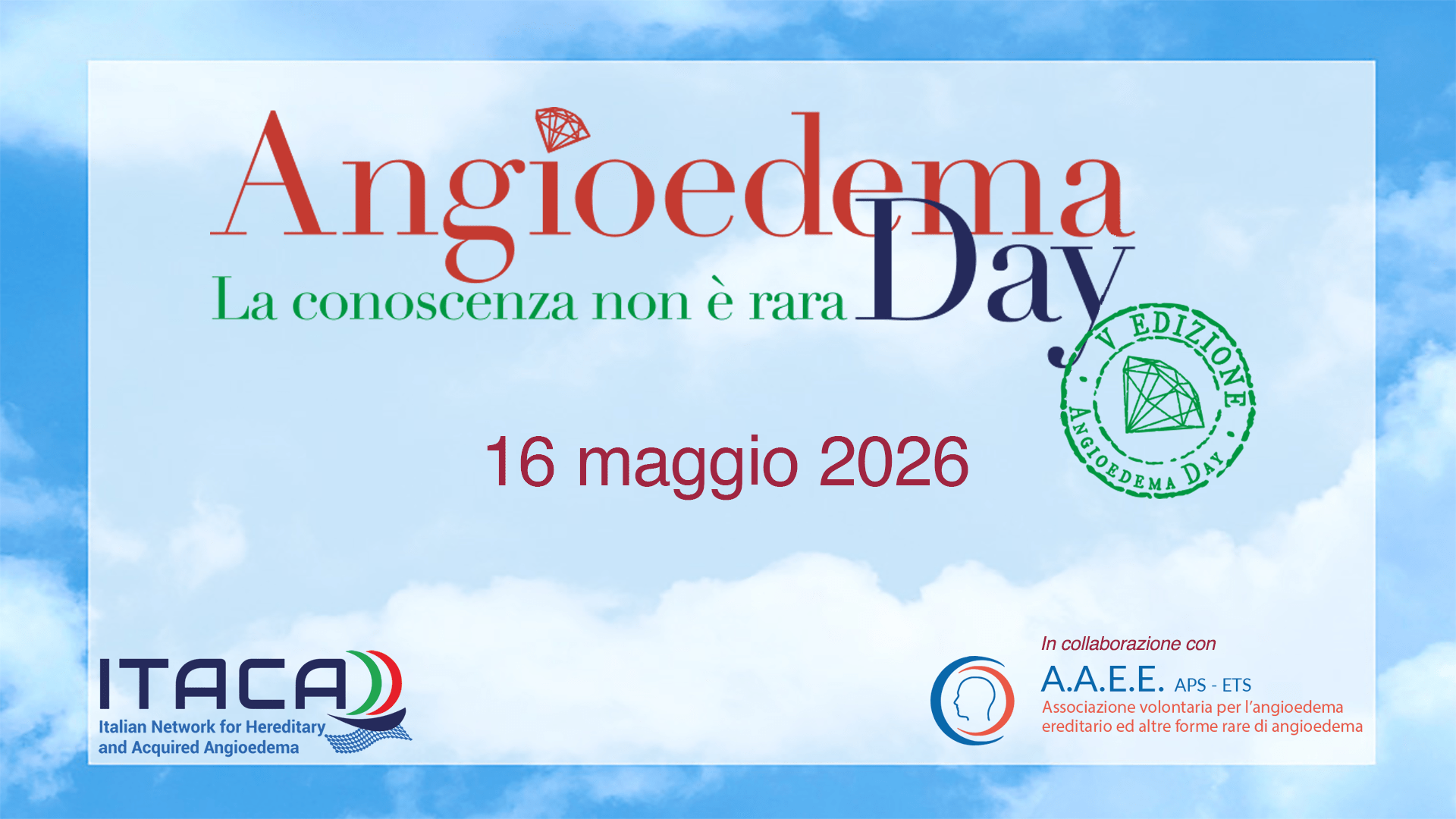 ITACA, in collaborazione con l’associazione pazienti A.A.E.E., organizza la quinta edizione dell’Angioedema Day, che si terrà il 16 maggio 2026 in occasione della giornata mondiale dell’angioedema.